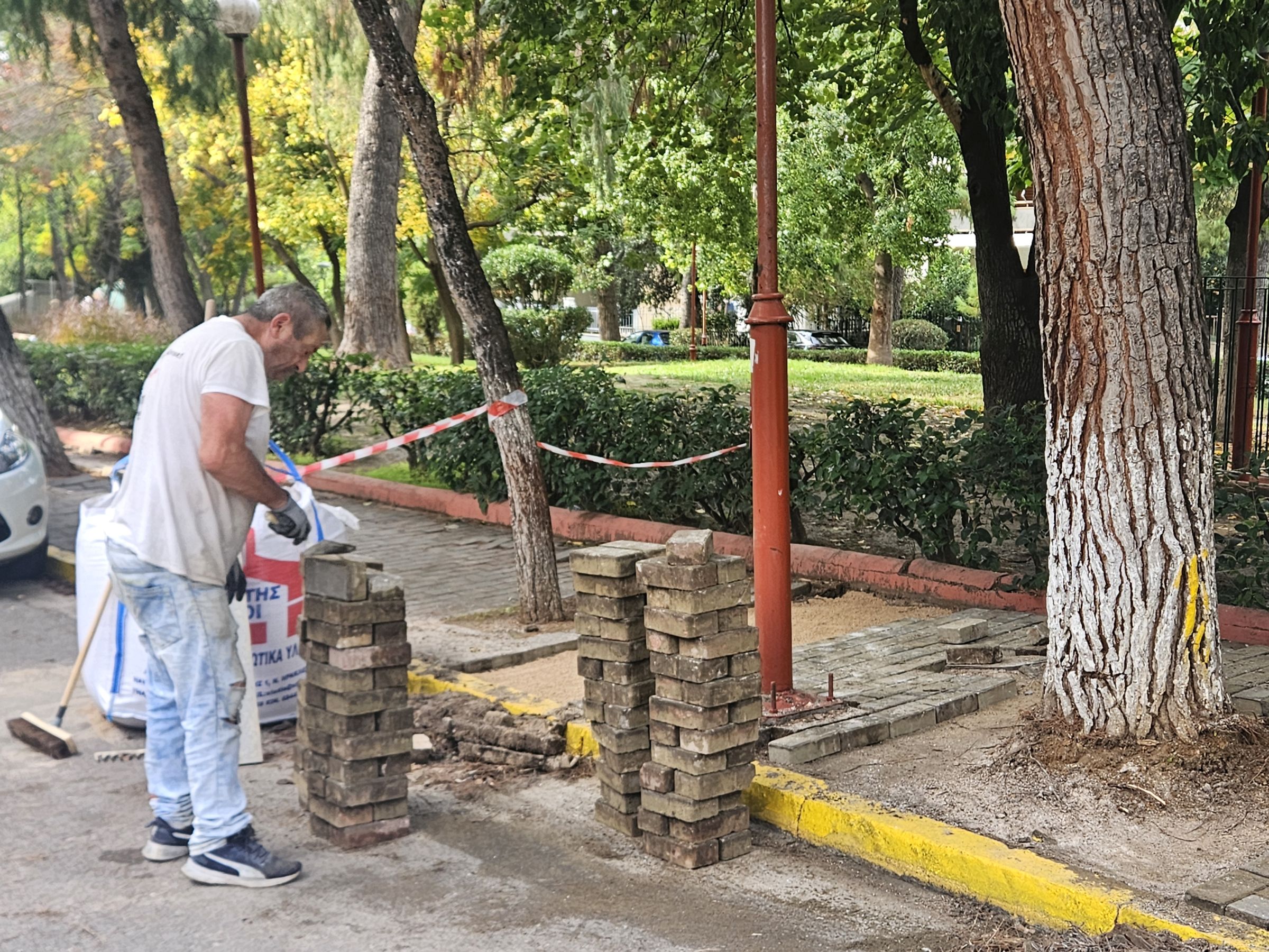 Η Τεχνική Υπηρεσία του Δήμου αφαιρεί τους παλιούς κυβόλιθους, διαμορφώνει εκ νέου τις διαδρομές και τους τοποθετεί ξανά, ώστε ο περίπατος να είναι πιο άνετος και ασφαλής για μικρούς και μεγάλους.