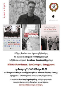 Ο Δήμος Αιγάλεω, στο πλαίσιο του Μήνα Αντιφασιστικών Δράσεων, σας προσκαλεί σε μια ιδιαίτερη εκδήλωση λόγου και διαλόγου με τον ιστορικό Μενέλαο Χαραλαμπίδη, με αφορμή τα βιβλία του και με θέμα: