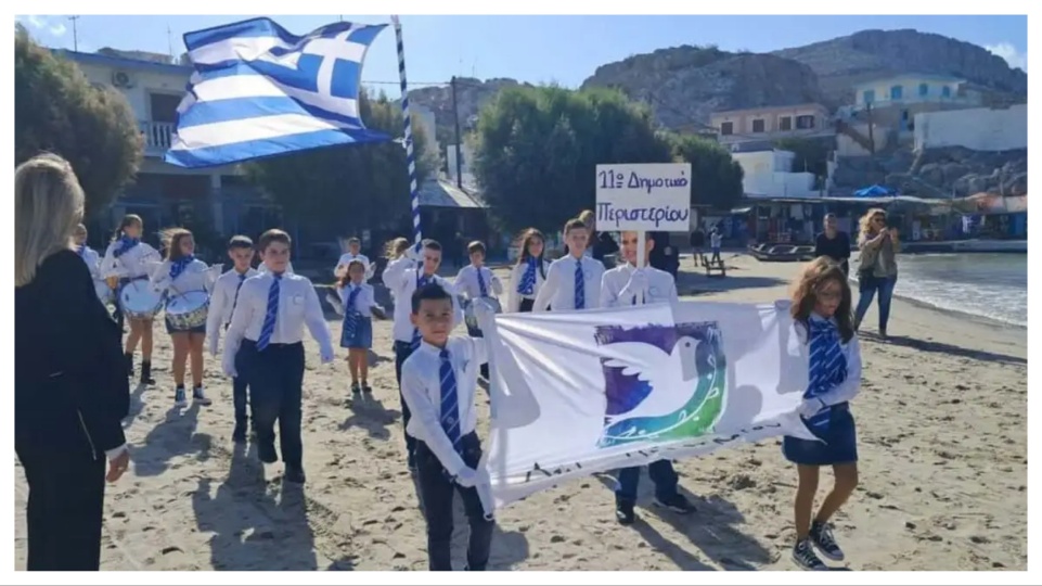 Φέτος, όμως, στο πλευρό τους στάθηκε η αποστολή του 11ου Δημοτικού Σχολείου Περιστερίου, που ταξίδεψε από την καρδιά της Αθήνας έως την άκρη του Αιγαίου για να ενωθεί με τους μαθητές του νησιού στην κοινή παρέλαση.