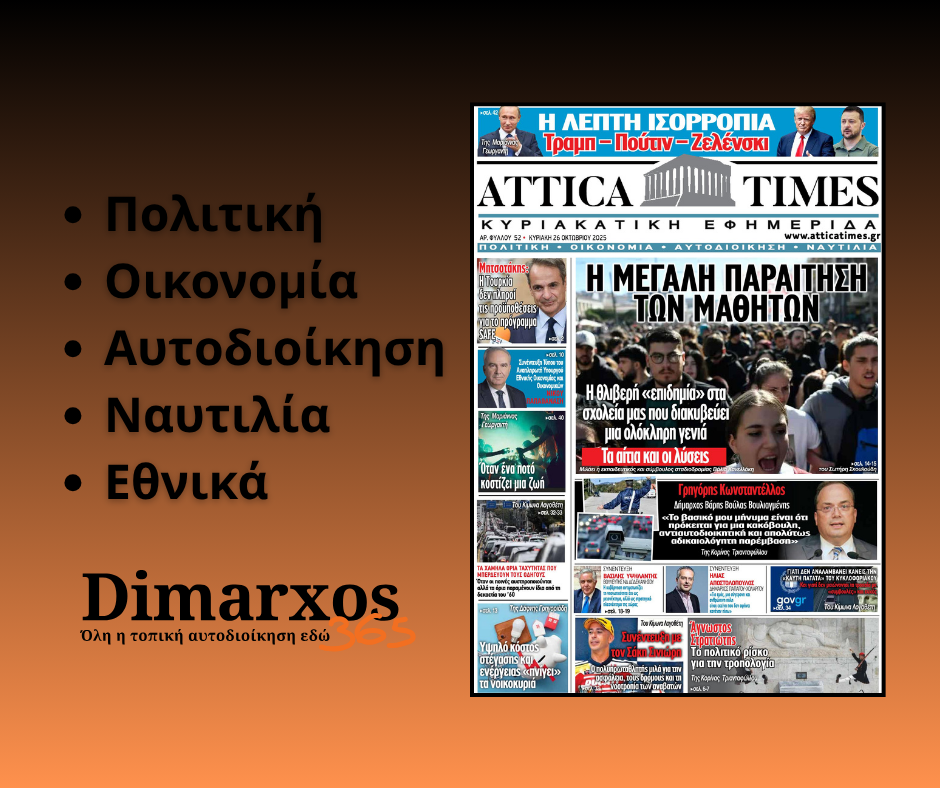 Ο Dimarxos365 φιλοξενεί την εφημερίδα Attica Times της Κυριακής