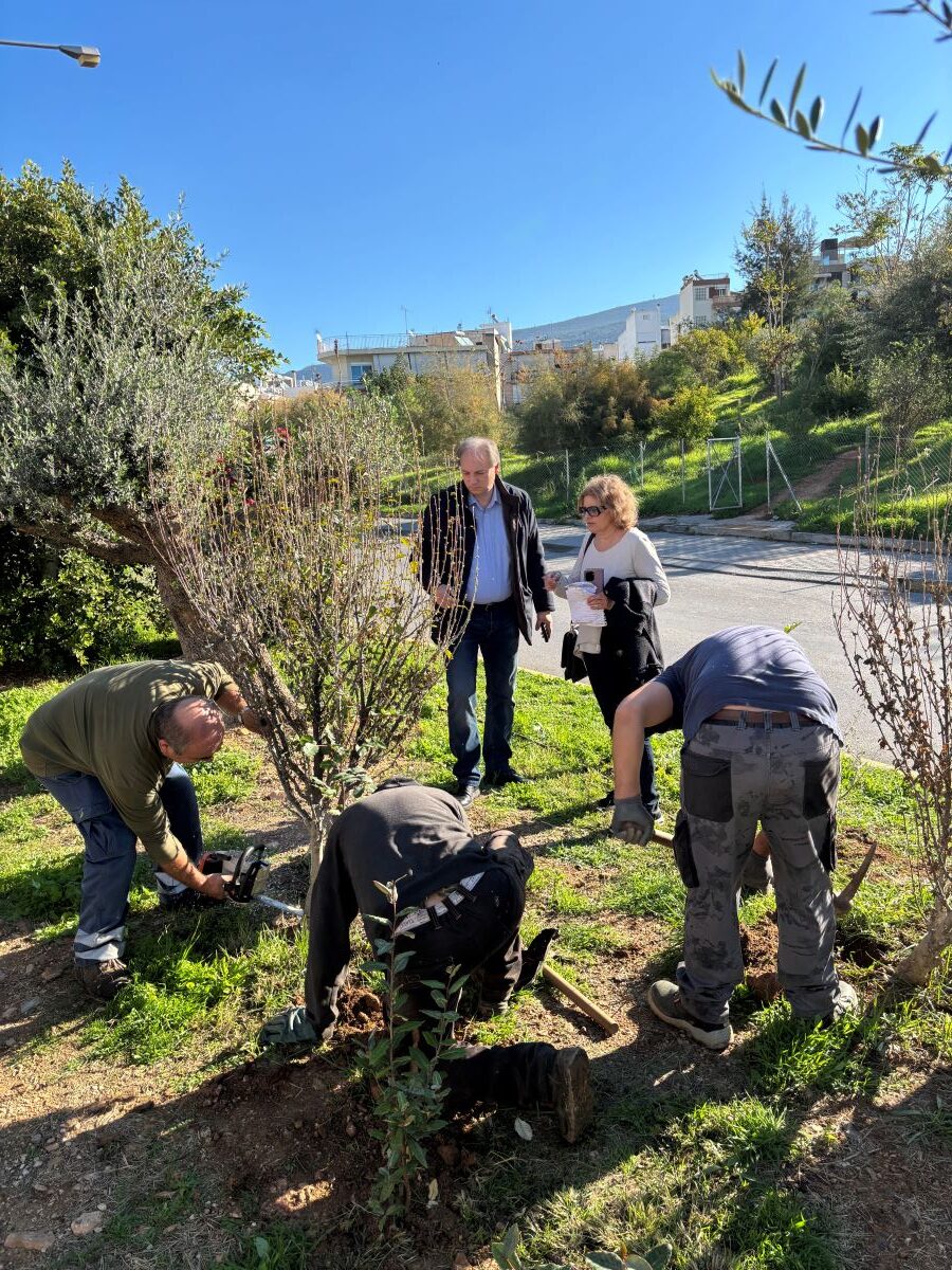 Οι φυτεύσεις πραγματοποιήθηκαν υπό την επίβλεψη της Υπηρεσίας Πρασίνου του Δήμου Βύρωνα, καθώς και με την παρουσία του Δημάρχου Βύρωνα, Αλέξη Σωτηρόπουλου, και του Αντιδημάρχου Καθαριότητας και Πρασίνου, Γιώργου Γκαρμπουνώφ.