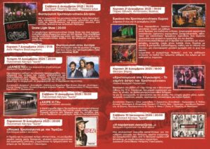 Drone Light Show (έναρξη: 20:00)- Tο μεγαλύτερο χριστουγεννιάτικο Drone Show που έχει πραγματοποιηθεί μέχρι σήμερα για Δήμο, με 350 drones. Ένα υπερθέαμα που θα συνδυάζει σύμβολα και ευχές του δήμου, μαζί με εντυπωσιακά χριστουγεννιάτικα σχέδια που θα μαγέψουν μικρούς και μεγάλους.