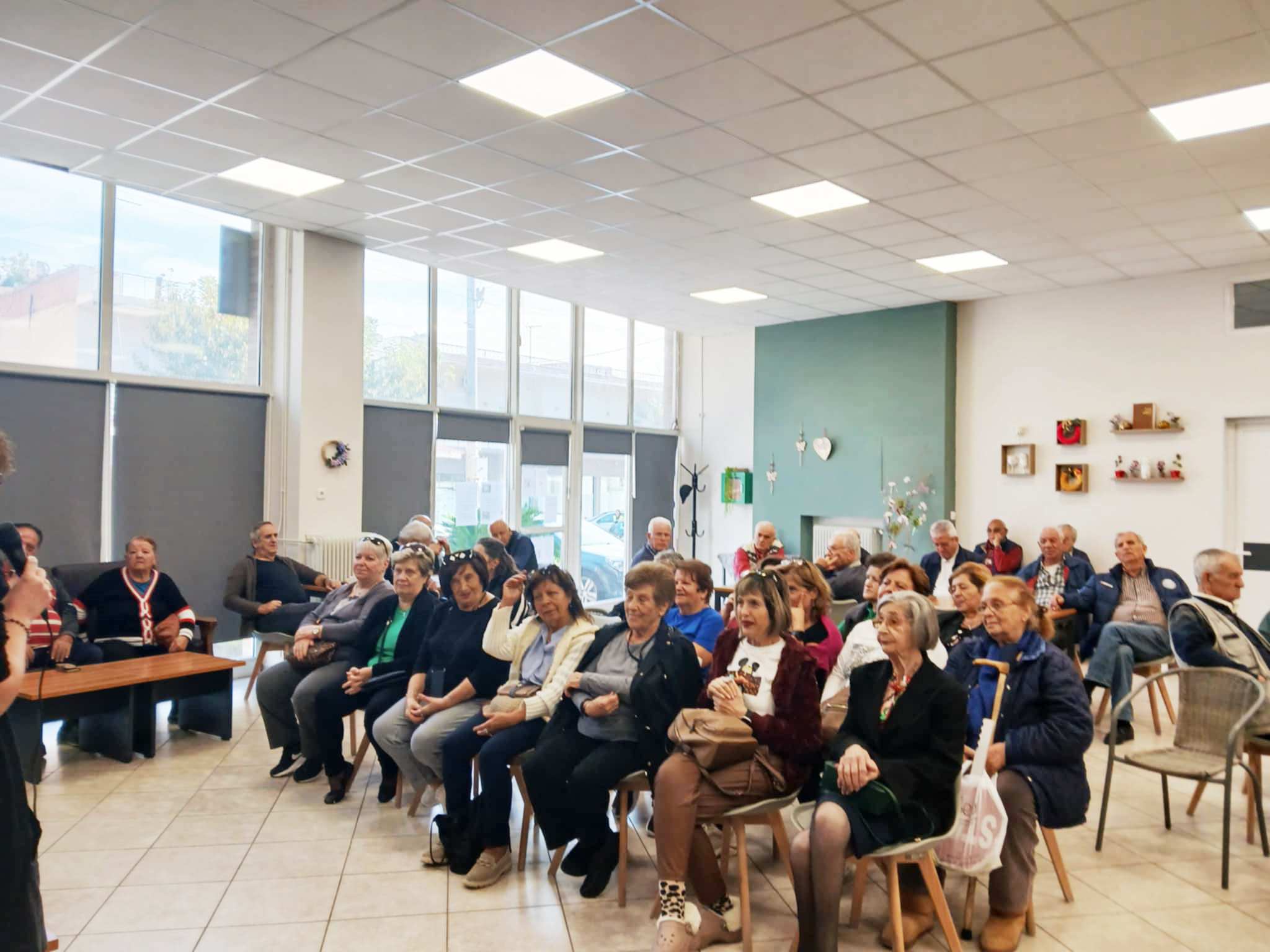 Παράλληλα, στις 10/11, στο ΚΑΠΗ Χασιάς, οι ειδικοί ανέπτυξαν θέματα που αφορούν την ψυχική υγεία των ηλικιωμένων, τις φοβίες που συχνά εμφανίζονται στην τρίτη ηλικία, καθώς και τη σημασία της φροντίδας του εαυτού.