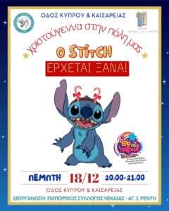 «Ο Αη Βασίλης ξεκινά το ταξίδι του στην πόλη μας» την Πέμπτη 18 Δεκεμβρίου, ώρα 6.00 μ.μ έως 8.00 μ.μ. Η εορταστική πορεία θα ξεκινήσει από τη συμβολή των οδών Βουρνόβα και Κωστή Παλαμά στη Νεάπολη και θα φτάσει έως Βουρνόβα και Πραξιτέλους. Ο Αη Βασίλης και η μασκότ Stitch θα μοιράσουν δώρα, θα προσφέρουν Πιστοποιητικό «Καλού Παιδιού 2025» και θα παραλάβουν γράμματα και ευχές από τα παιδιά. Στη δράση συμμετέχουν και οι βοηθοί του Αη Βασίλη.