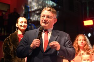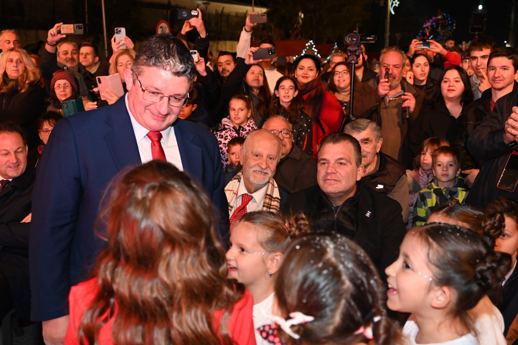 Η πιο μαγική στιγμή της βραδιάς ήρθε όταν οι γλυκές «χιονονιφάδες» της εκδήλωσης κάλεσαν τον Δήμαρχο στη σκηνή για την πολυαναμενόμενη στιγμή του φωτισμού.Με το πλήθος να μετρά αντίστροφα και μέσα σε μια έκρηξη φωτός, χρωμάτων και συγκίνησης, το χριστουγεννιάτικο δέντρο άναψε και φώτισε τον ουρανό των Αχαρνών, σκορπίζοντας χαρά σε όλους.