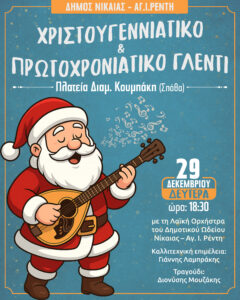Ο Δήμος Νίκαιας – Αγ. Ι. Ρέντη ολοκληρώνει το φετινό πρόγραμμα χριστουγεννιάτικων εκδηλώσεων που διοργάνωσε σε συνεργασία με τον Εμπορικό Σύλλογο της πόλης, με μια σειρά εορταστικών δράσεων από τη Δευτέρα 29 έως την Τετάρτη 31 Δεκεμβρίου 2025. Οι εκδηλώσεις συνεχίζουν τη γιορτινή ατμόσφαιρα στην πόλη, με το ταξίδι του Άη Βασίλη και των βοηθών του με δώρα και εκπλήξεις για τα παιδιά. Στην πλατεία Διαμάντως Κουμπάκη τη Δευτέρα 29 Δεκεμβρίου και ώρα 18.30 θα πραγματοποιηθεί το Πρωτοχρονιάτικο γλέντι της Λαϊκής Ορχήστρας του Δημοτικού Ωδείου Νίκαιας – Αγ. Ι. Ρέντη. Παράλληλα, έως τις 6 Ιανουαρίου συνεχίζονται τα Christmas Free Games in Town 2025 στην πλατεία Αγίου Νικολάου, με δωρεάν τρενάκι και καρουζέλ για όλα τα παιδιά.