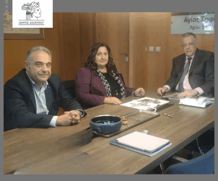Πραγματοποιήθηκε, σε κλίμα ουσιαστικού διαλόγου, συνάντηση της Δημάρχου Διονύσου, Κατερίνας Μαϊχόσογλου, και του Αντιδημάρχου Τεχνικών Υπηρεσιών, Αλέξανδρου Κουκά, με τον Υφυπουργό Υποδομών, Νίκο Ταχιάο, στο πλαίσιο της συστηματικής προσπάθειας του Δήμου για πλήρη και αξιόπιστη ενημέρωση επί του ζητήματος της ενδεχόμενης χωροθέτησης διοδίων στον Άγιο Στέφανο.
