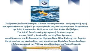 Εορτασμός Θεοφανείων 2026 στο Παλαιό Φάληρο