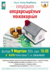 Ο Δήμος Αγίας Βαρβάρας σε συνεργασία με την ΕΚΠΟΙΖΩ διοργανώνει εκδήλωση τη Δευτέρα 9 Μαρτίου 2026 και ώρα 18:00 στο Α’ ΚΑΠΗ, Καλαντζάκου 7, Αγία Βαρβάρα, με θέμα: