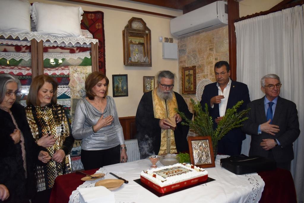 Την πίτα ευλόγησε ο εφημέριος του Ιερού Ναού Παναγίας Κοιμήσεως Θεοτόκου π. Δημήτρης Παναγακόπουλος, που έδωσε πρώτος τις ευχές του, εκθειάζοντας το έργο των γυναικών του Συλλόγου που διατηρούν την Αρβανίτικη Παράδοση και τη μεταλαμπαδεύουν στις επόμενες γενιές.