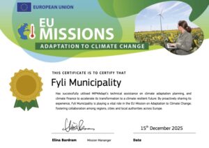 Ο Δήμαρχος Φυλής Χρήστος Παππούς είναι ένας από τους πρώτους υπογράφοντες του Χάρτη της ΕΕ για την Αποστολή Προσαρμογής στην Κλιματική Αλλαγή (EU Missions, Adaptation to Climate Change).
