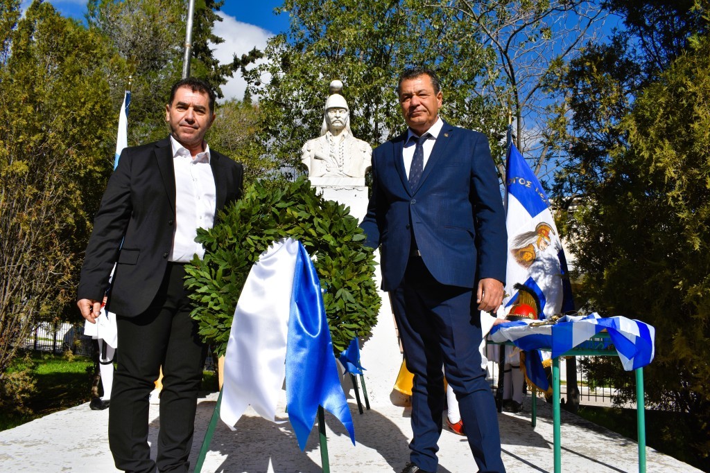 Στεφάνια στην προτομή κατέθεσαν από κοινού ο Δήμαρχος Φυλής Χρήστος Παππούς και ο Αντιδήμαρχος Ζεφυρίου Γιάννης Μαυροειδάκος, ο Αντιπρόεδρος της Βουλής Θανάσης Μπούρας μαζί με τον Υφυπουργό Οικονομικών Γιώργο Κώτσηρα και ο Πρόεδρος του Συλλόγου Βασίλης Θεοδωρόπουλος με το μέλος του Δ.Σ Νίκο Τοπιτζή και τον Αντιπρόεδρο του Συλλόγου Πελοποννησίων Αχαρνών Γιάννη Έλληνα.