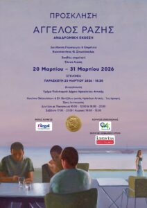 Την αναδρομική έκθεση του γνωστού ζωγράφου Άγγελου Ραζή παρουσιάζει στο κοινό ο Δήμος Ηρακλείου Αττικής. Από τις 20 έως τις 31 Μαρτίου στον καινούργιο δημοτικό πολυχώρο «ΟΤ216» (Παλαιολόγου και Ελ. Βενιζέλου, Ηράκλειο Αττικής) ο Άγγελος Ραζής εκθέτει επιλεγμένα έργα της μακράς του καλλιτεχνικής πορείας, υπό την διεύθυνση παραγωγής και την επιμέλεια του ιστορικού τέχνης, Κωνσταντίνου Σπυρόπουλου.