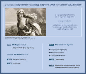 Με την καθιερωμένη κατάθεση στεφάνων και την παρέλαση των μαθητών των σχολείων της πόλης θα κορυφωθούν την Τετάρτη 25 Μαρτίου 2026 οι τιμητικές εκδηλώσεις για την 25η Μαρτίου.
