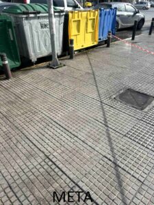 Συγκεκριμένα, το προηγούμενο διάστημα πραγματοποιήθηκε καθαρισμός σε βάθος στο πεζοδρόμιο επί της Ιεράς Οδού και Αγίας Λαύρας (περιοχή Ρακάδικα), παραπλεύρως κάδων απορριμμάτων, όπου οι ρύποι ήταν ιδιαίτερα επιβαρυμένοι και απαιτούσαν εξειδικευμένη αντιμετώπιση.
