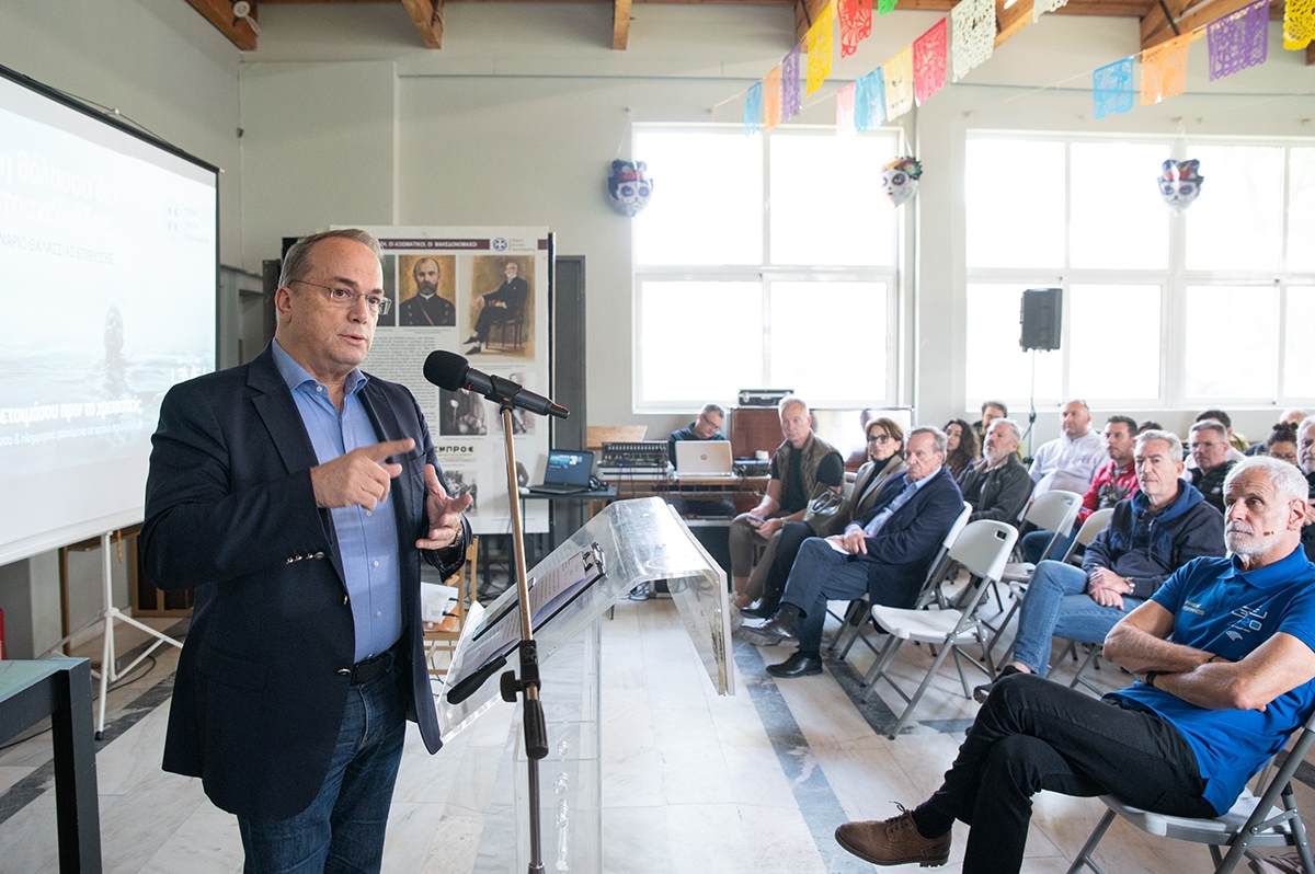 Στη συνέχεια, ο Πέτρος Παρθένης, ιδρυτής του κινήματος ανοικτής θαλάσσιας κολύμβησης WeSwim, μίλησε για τη βιωματική σχέση του ανθρώπου με το νερό και για το πώς η συστηματική επαφή με τη θάλασσα μπορεί να καλλιεργήσει μια πιο συνειδητή και υπεύθυνη στάση απέναντι στο υδάτινο περιβάλλον.