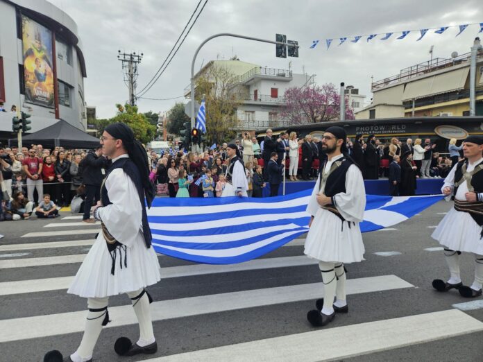 Ώρα 12:00 μ.μ. έναρξη παρέλασης με μαθητές και μαθήτριες δημόσιων & ιδιωτικών σχολείων, παιδικούς σταθμούς, εθνικοτοπικούς συλλόγους και οργανώσεις, ΚΑΠΗ, Σώμα Ελληνικού Οδηγισμού, αθλητικούς φορείς.