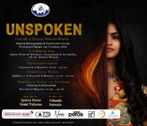 Οι φιλότεχνοι κάτοικοι και δημότες της πόλης μας θα έχουν την ευκαιρία να απολαύσουν την έκθεση φωτογραφίας και εικαστικών UNSPOKEN , με πορτραίτα γυναικών από διαφορετικά μέρη του κόσμου.
