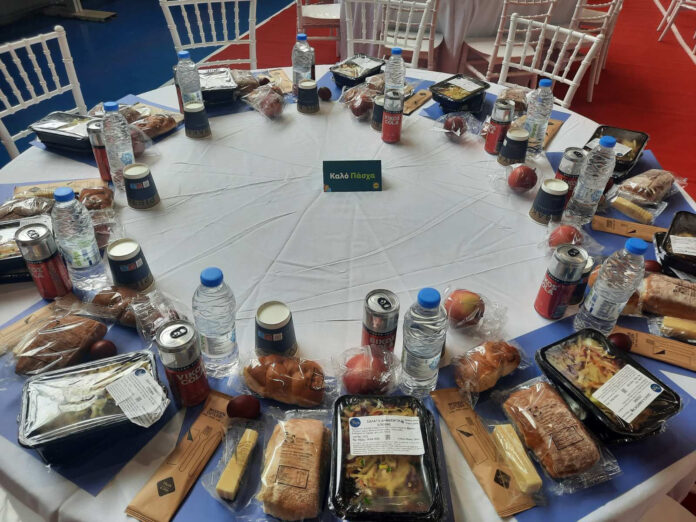 Κατά τη διάρκεια του γεύματος προσφέρθηκαν πλήρεις μερίδες παραδοσιακών πιάτων και συνοδευτικών εδεσμάτων, στις οποίες συμπεριλαμβάνονταν αρνί με πατάτες φούρνου, σαλάτα εποχής, φρούτο, τσουρέκι, αυγό κόκκινο και αναψυκτικό.