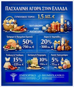Η πασχαλινή αγορά του 2026 στην Ελλάδα κινήθηκε σε ένα περιβάλλον έντονων πιέσεων στο διαθέσιμο εισόδημα, αλλά και προσαρμογής της καταναλωτικής συμπεριφοράς στα νέα δεδομένα. Ο πασχαλινός «συμπυκνωμένος» τζίρος των 7–10 ημερών, με υψηλή ένταση κατανάλωσης και με σημαντικό μοχλό το 1 δισ. ευρώ του Δώρου Πάσχα, κρατήθηκε και φέτος περίπου στο 1,5 δισ. ευρώ. Η παραδοσιακή σημασία του Πάσχα έδειξε αντοχές σύμφωνα με την αγοραστική κίνηση, που όμως χαρακτηρίστηκε περισσότερο από συγκράτηση, παρά από γιορτινή παρόρμηση.