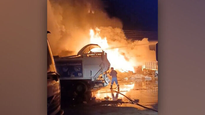 Οι φλόγες προκάλεσαν σοβαρές ζημιές, καθώς ένα όχημα του δήμου καταστράφηκε σχεδόν ολοσχερώς, ενώ δύο ακόμη υπέστησαν μικρότερης έκτασης φθορές.